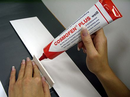 Специальный клей для склеивания жесткого, вспененного ПВХ и пенопласта. Время фиксации от 2 до 4 минут