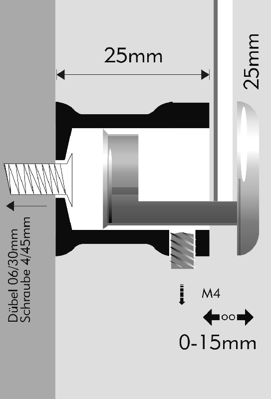 - расстояние от стены 25 мм,