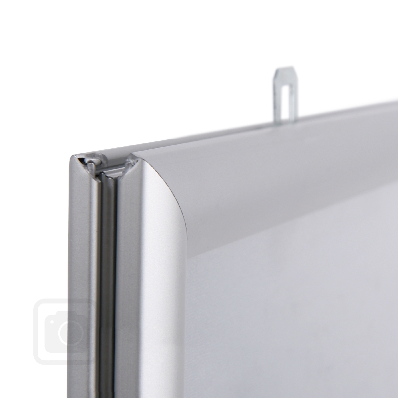 Рамка из анодированного алюминия с зажимным механизмом для быстрого и удобного двухстороннего размещения и замены плакатов, афиш и других видов печатной продукции. Защиту плаката от выгорания обеспечит специальный пластик с антибликовым эффектом. Ширина профиля 25мм.